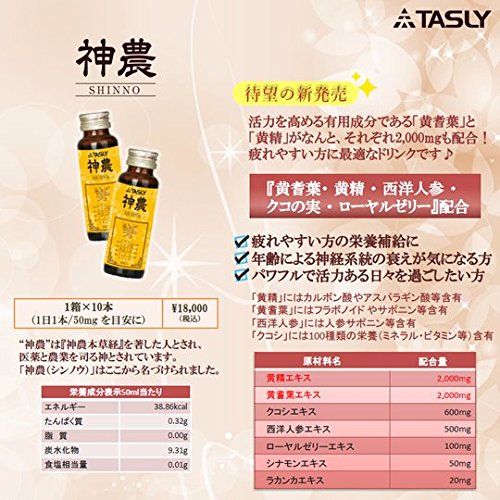 TASLY(タスリー) 神農(シンノウ) 黄耆葉 黄精 西洋人参 クコの実 ローヤルゼリー 配合 漢方 健康食品 ドリンク (50ml×10本)