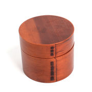 天然带弯曲便当盒的木制一步式圆形 1...