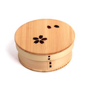 木制单层圆形樱花自然带弯曲便当盒 1...
