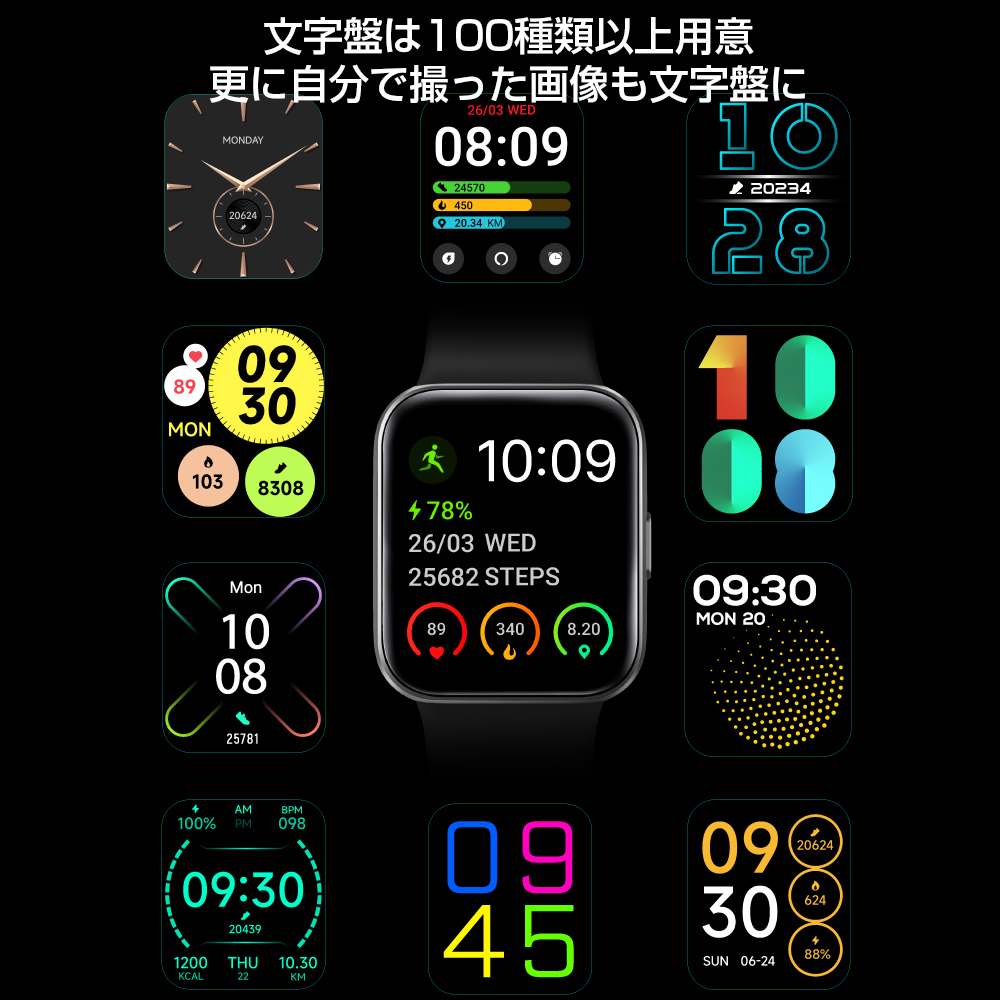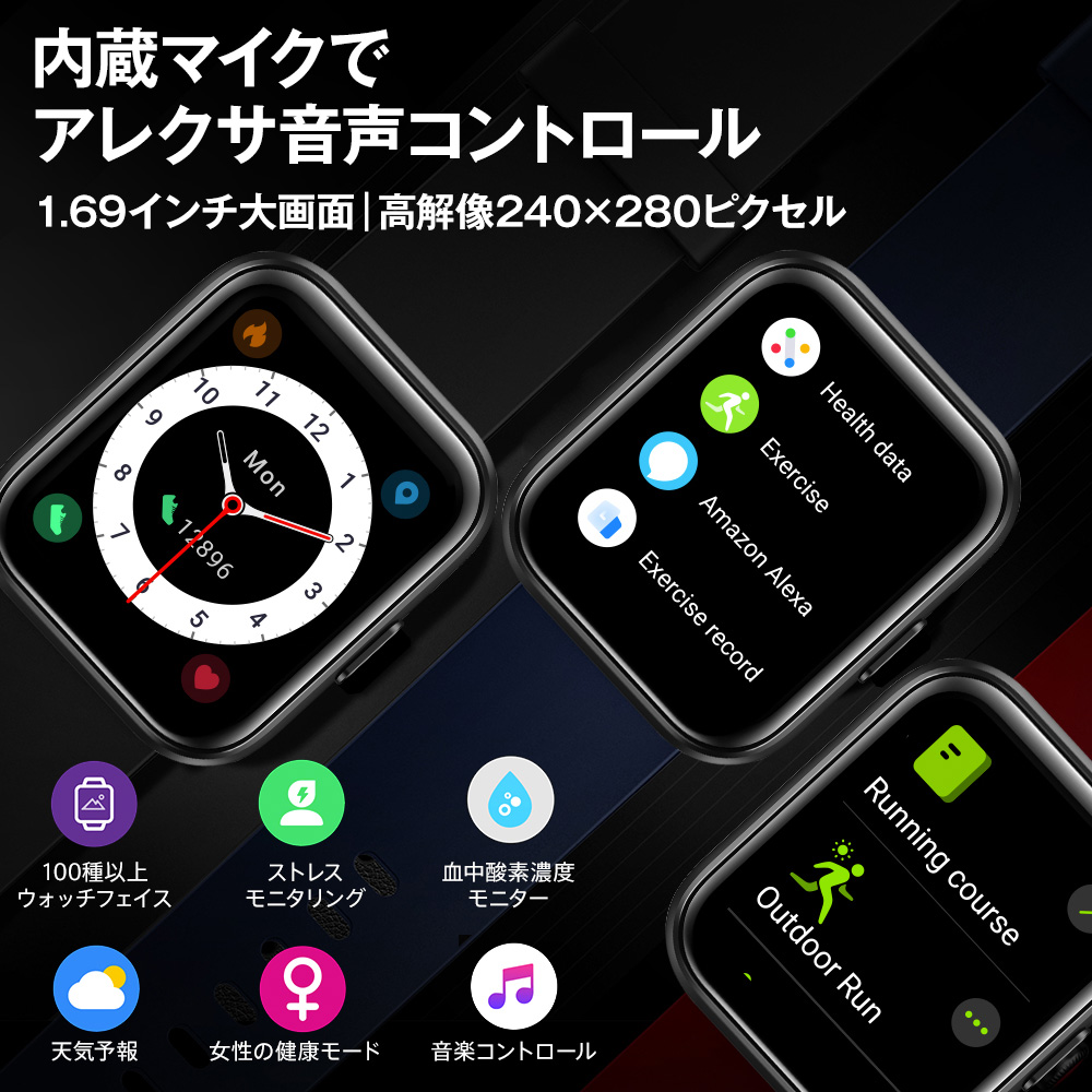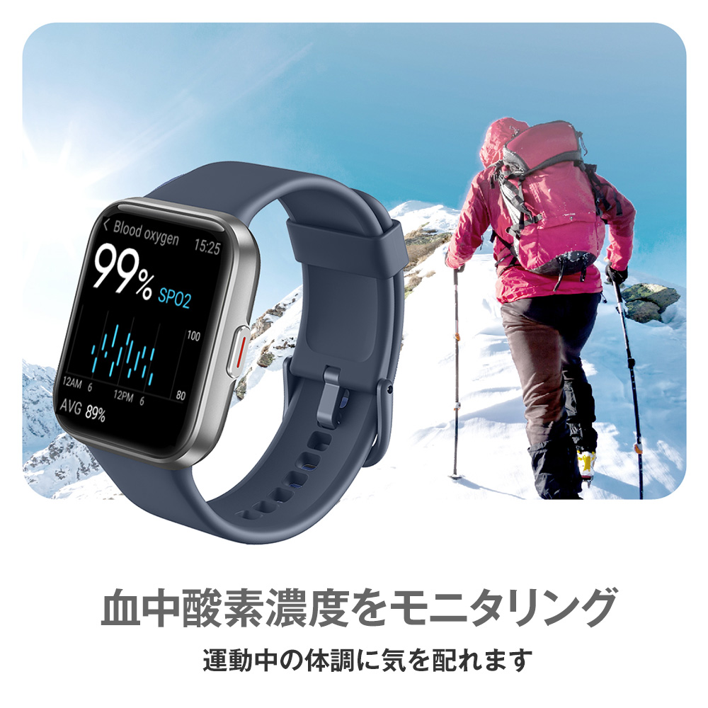 BLIXIA Smartwatch Bluetooth call function 1.69" large screen Heart rate monitor Blood oxygen analyzer Depth 50m waterproof Alexa compatible 5ATM 24-hour stress measurement iPhone Android compatible Genuine domestic product