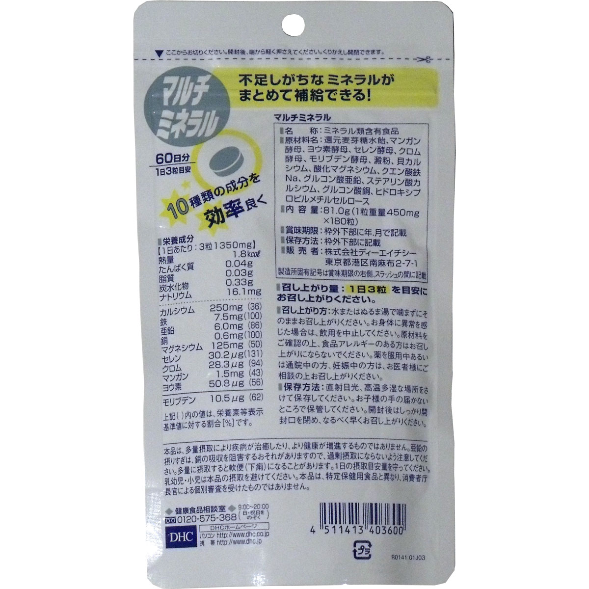 Manufacturer: DHC Capacity: 180 tablets Country of origin: Japan Description of item: ★ Minerals that are only slightly present in the body, but play an important role for health. However, there are many uses of processed foods and eating out, and modern people who tend to be biased in nutrition tend to lack sufficient mineral intake. DHC is composed of 10 minerals that complement each other and work in a well-balanced manner. Eat a variety of nutrients efficiently and improve your health base.