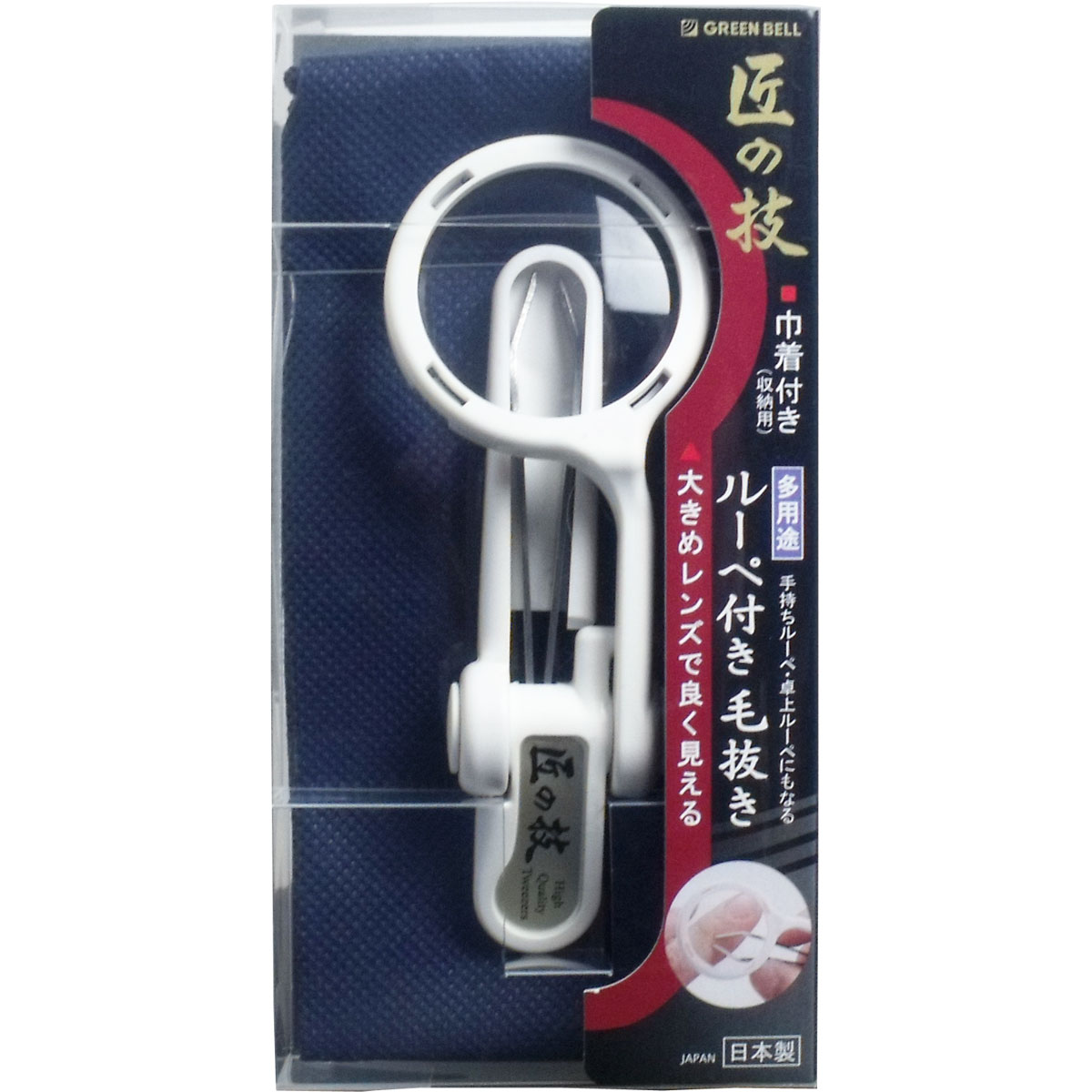 匠の技 ルーペ付き毛抜き 収納用巾着...