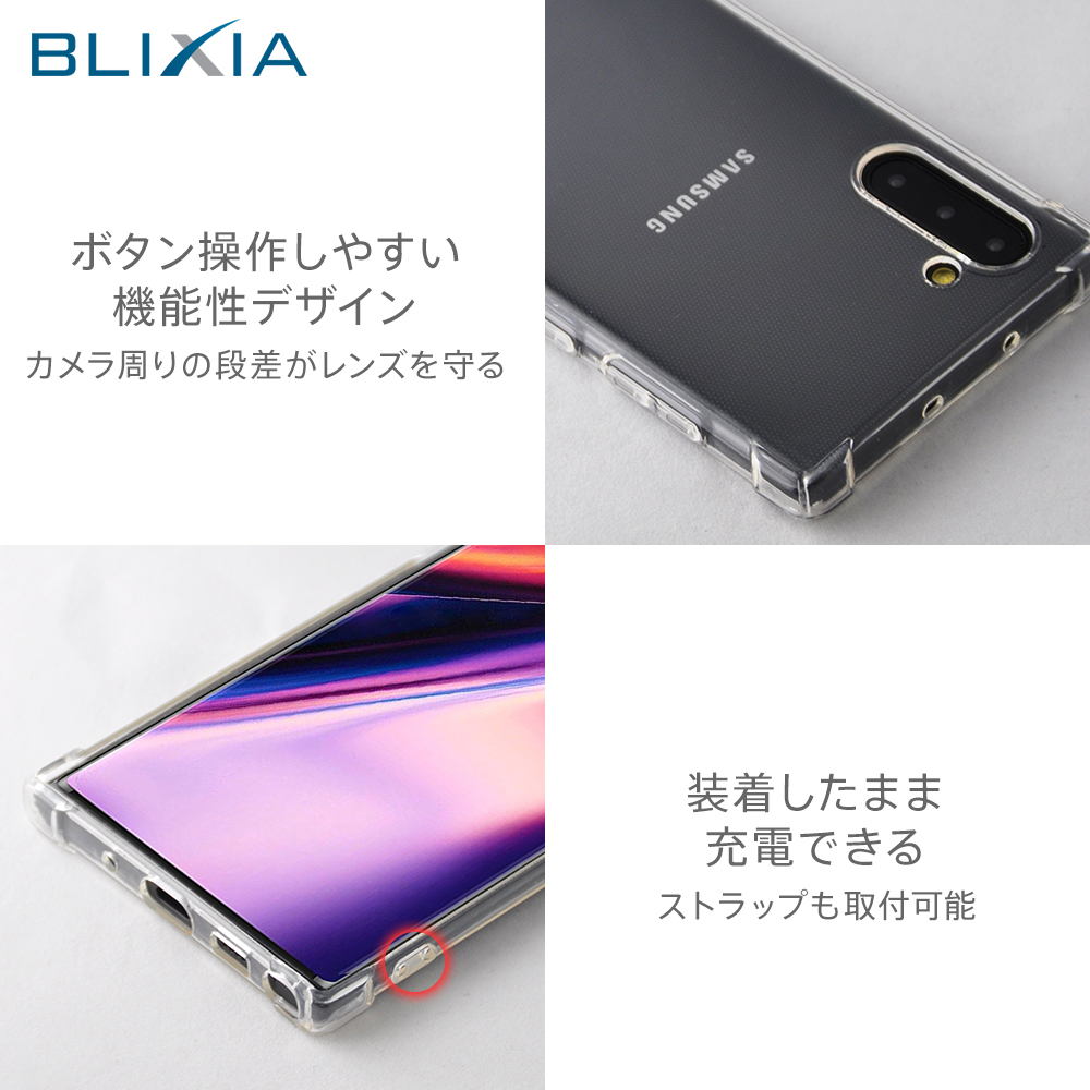 ■透明感のあるボディと柔軟な外縁■ BLIXIAブランドのおすすめ商品、Galaxy Note10用のアクリル+TPUクリア保護ケースです。 ガラスに匹敵する光線透過率を誇るアクリル素材と、柔らかく弾力性のあるTPU素材を組み合わせることで スマートフォン本体の美しいデザインを保ちながら、使用時の傷や衝撃から優しく端末を守ります。 【対応機種】 Galaxy Note10 【材質】 背面:アクリル、側面:TPU 【カラー】 クリア