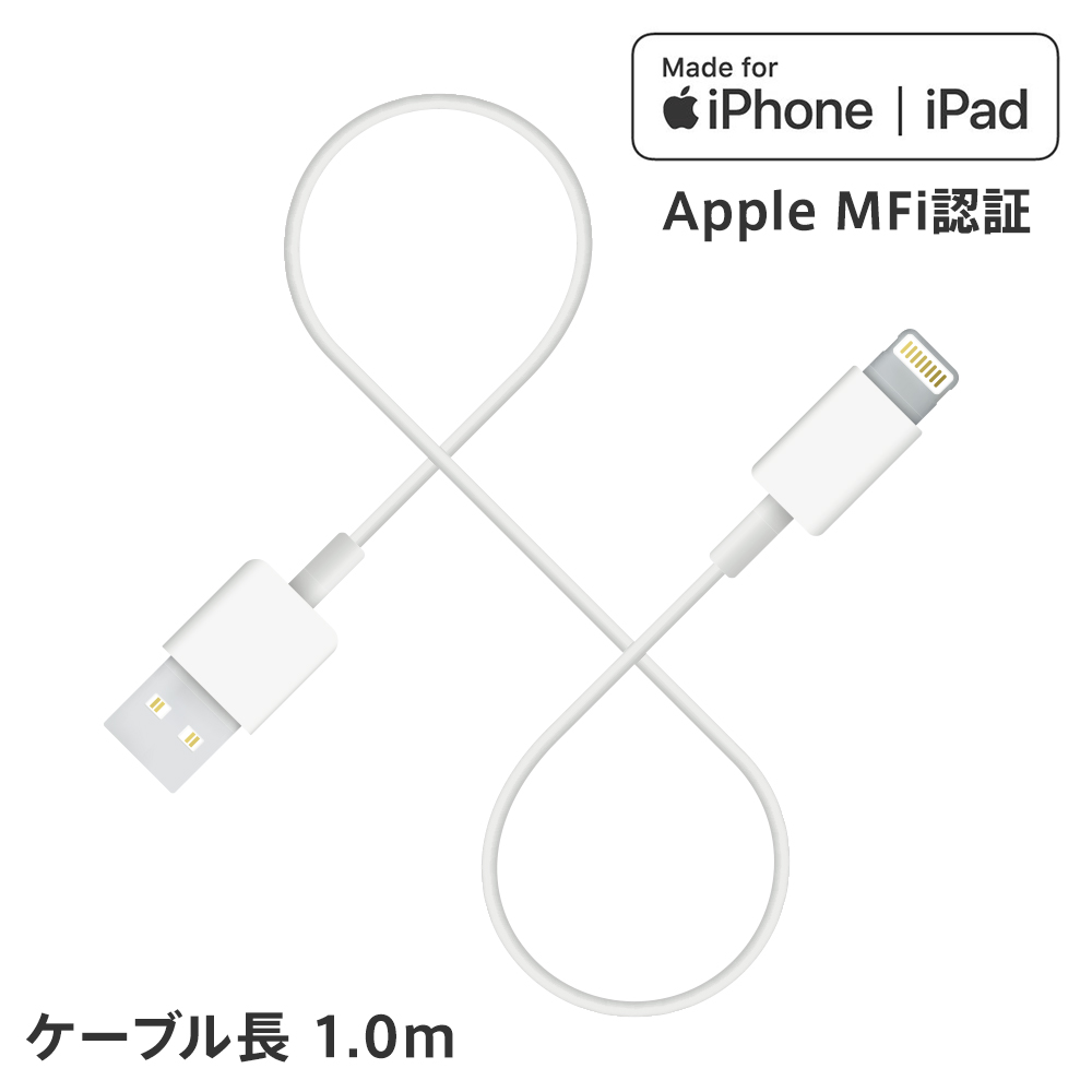 Apple公認のMFi認定取得済みのLightningケーブルです。 ケーブル全長は、純正付属品と同じ長さの1m。 今までのケーブルと同じ環境で利用する場合に最適です。 対応機種:iPhone12 iPhoneSE2 iPhone11 iPhone11Pro iPhone11ProMax iPhoneXS iPhoneXSMax iPhoneXR iPhoneX iPhone8 iPhone8Plus iPhone7 iPhone7Plus iPhoneSE iPhone6 iPhone6s iPhone6Plus iPhone6sPlus iPhone5 iPhone5s iPhone5c iPod touch( 第5世代) iPod nano( 第7世代) iPad( 第4世代) iPad mini iPad Air 他 ライトニングコネクタを搭載したiPhone / iPad ■コネクタ形状:ライトニング(オス) - USB A(オス) ■カラー:ホワイト ■ケーブル長:1.0m