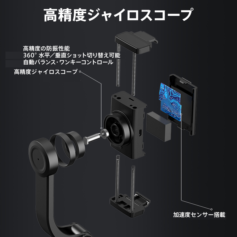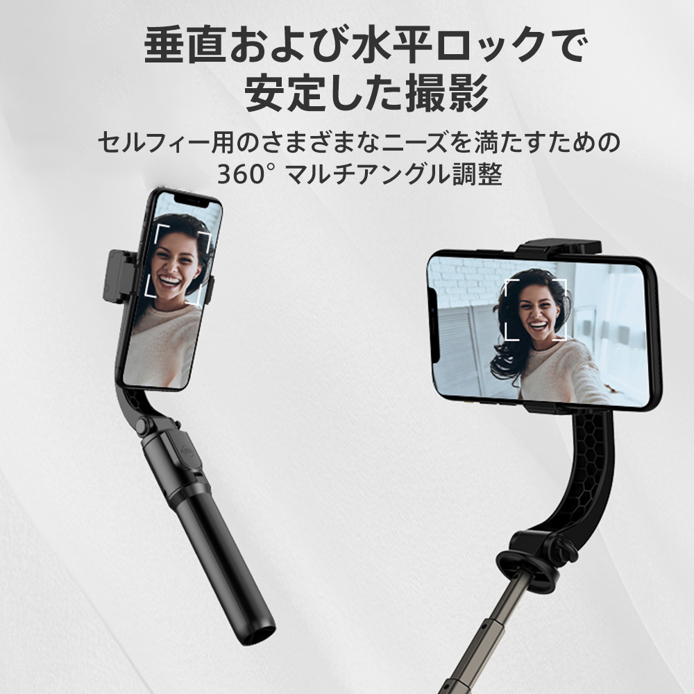 【優れた手ブレ補正機能】 BLIXIAスタビライザーは、高精度ジャイロスコープ、高精度モータコントロールと先進的な安定撮影アルゴリズムシステムを搭載。 自動的にバランスを取れるので、歩きながらの撮影でも手ブレや揺れなどを補正し、動く被写体もしっかりキャッチし、高品質な動画や自撮り画面を簡単に撮影できます。 【多機能Bluetoothリモコン付き】 Bluetoothワイヤレスリモコンは三脚一体のカードスロット設計を採用し、アプリ不要でスマホと接続するだけで使用でき、約10メートル離れた場所でも撮影できます。 【自撮り棒&スマホスタンドとしても使用可能】 BLIXIAスマホジンバルは、電源を切っても自撮り棒&スマホスタンドとしても使用できます。 4段階伸縮ロッドは最長580mm。グリップ部分は三脚に変形するので、スマホを支えて映画を見たり、ライブ配信やリモート会議、自撮りをしたりすることができます。 ■製品仕様■ モデル:H5 材質:ABS+アルミニウム 負荷:300g 本体重量:230g 充電電圧:5V リチウム容量:400mAh 作動時間:2時間 リモートコントロール距離:10 メートル以内 リモートコントロールバッテリー:CR1620 製品サイズ:190×70×40mm ロッド伸縮長さ:580mm MicroUSBケーブル、リモコン用電池付属