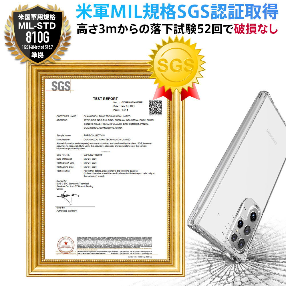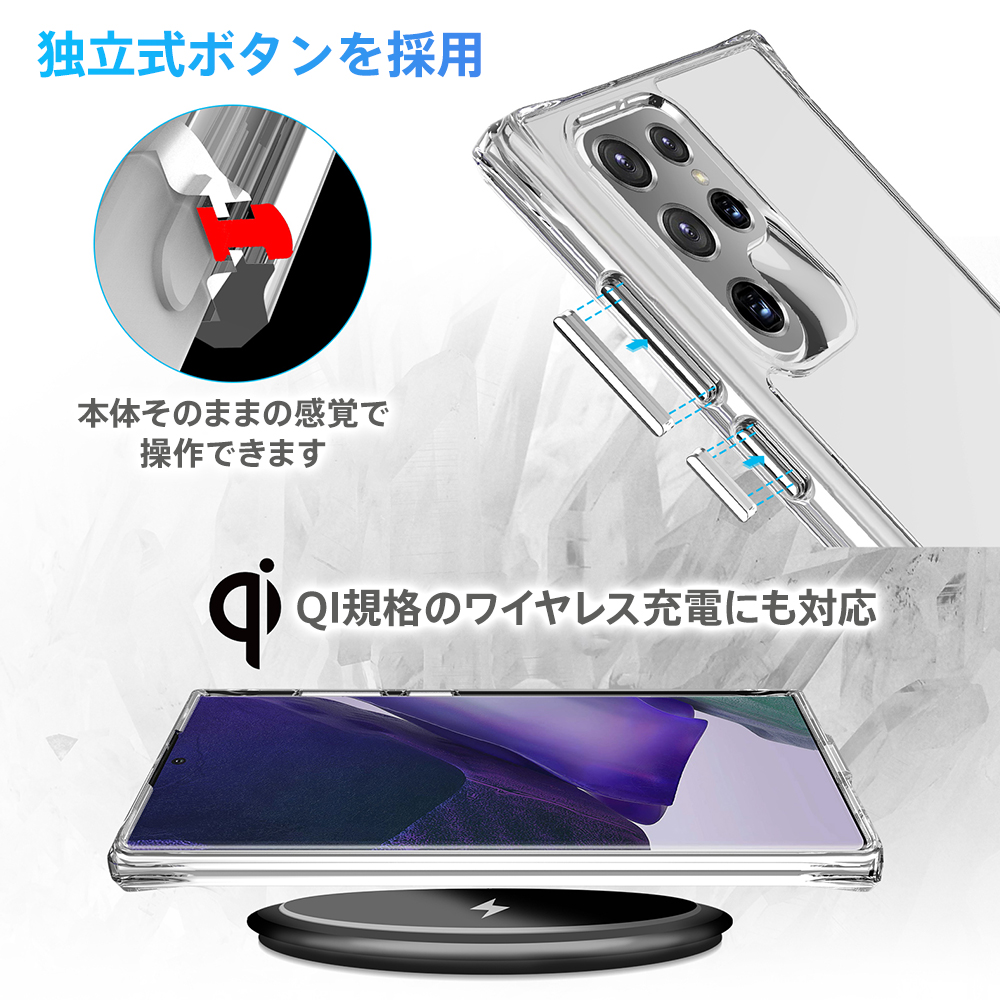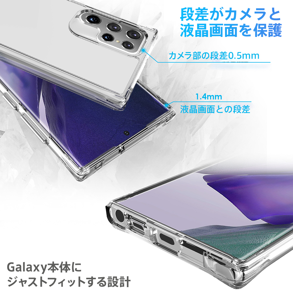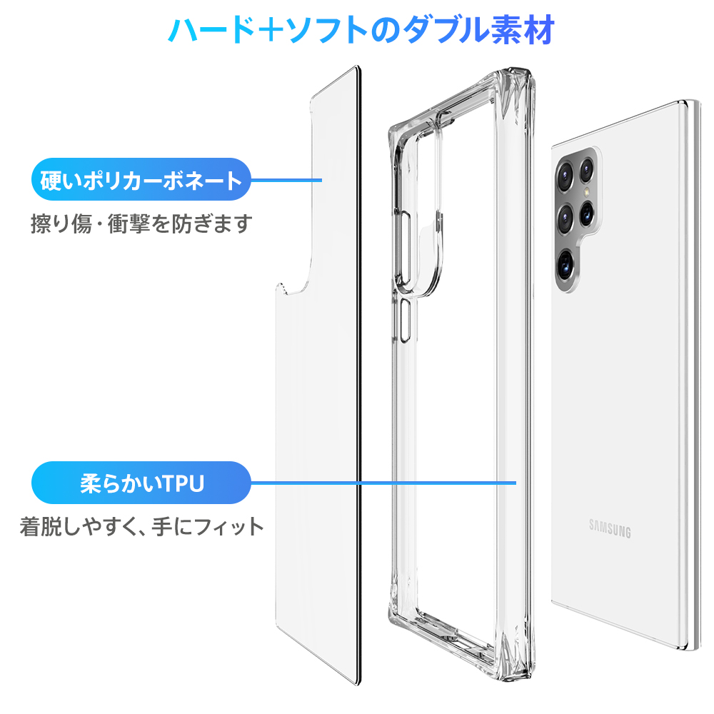 ■透明感のあるボディと柔軟な外縁■ BLIXIAブランドから登場したGalaxy S22 Ultra用の米軍MIL規格SGS認証取得 TPU+背面ポリカーポネート素材クリアケースです。 スタイリッシュなGalaxyのデザインを活かしなら、保護力を高めます。 米軍MIL規格SGS認証取得に加え、3mの高さから落下試験を行い52回破損なしの強度を誇るケースとなっております。 ケース側面にはしなやかで弾力性のあるTPU素材を採用。 背面は固く透明度が高いPC素材を使用しており、キズに強く、万一の落下の際にも背面への衝撃を緩和します。 ケースを装着したままのワイヤレス充電対応です。 【対応機種】 Galaxy S22 Ultra 【材質】 背面:ポリカーポネート(PC)、側面:TPUソフト素材 【カラー】 クリア