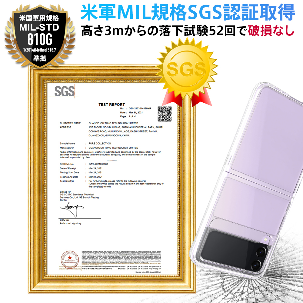 BLIXIA Galaxy Z flip3 TPU+PC 保護ケース 米軍MIL規格SGS認証取得 3mから落下試験 52回破損なし 耐衝撃 Qi急速充電対応 バンパーケース