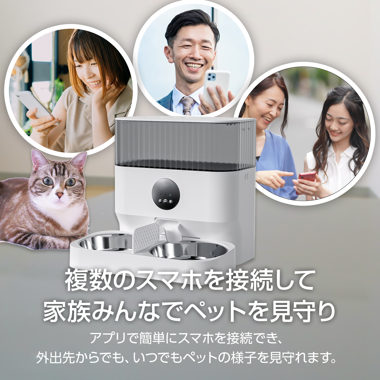 【公式サイト限定価格】ブリシア公式 自動給餌器PFC-2 多頭飼い カメラ付き自動給餌器 猫 2匹 中小型犬用 録音可 手動給餌可 2WAY給電 WiFi接続式 乾燥剤内蔵 2個のステンレス製トレイ付き 定時定量 5L大容量 ペットフィーダー