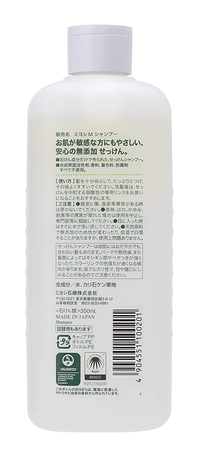 香料・着色料・防腐剤全て無添加。水と石けんだけで造り、余計なものを入れないことで、より頭皮にやさしくしました。浸透力がおだやかな石けんは、頭皮の表面の汚れだけを落とし、頭皮に必要な皮脂まで取りすぎません。 サイズ:330×210×220(mm)
