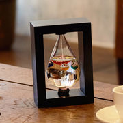 モダンな雰囲気でお部屋を彩るFun Science ガラスフロート温度計しずく 物理学者のガリレオ・ガリレイは液体の比重が気温によって変化することを発見。その原理を使ってこの温度計は作られております。 気温によって上下するガラスの球体が気温を示します。実際の気温は上層部に浮いているガラス球体の最下段のガラス球体に付いているプレートで読み取ります。 艶のある木枠がモダンな印象のインテリア温度計です。 ※火気や暖房器具の近くで使用しないで下さい。 ※本品が割れ、中の液体が肌に触れてしまったら、流水ですぐに洗い流して下さい。 もし、衣類にかかった場合はその衣類を脱ぎ流水で十分に洗い流して下さい。 商品サイズ:高さ145×幅100×奥行60mm 材質:MDF、ホウケイ酸ガラス、パラフィンオイル 茶ダンボール箱入り ※測定可能範囲:18℃〜24℃ ※ガラス球体4個