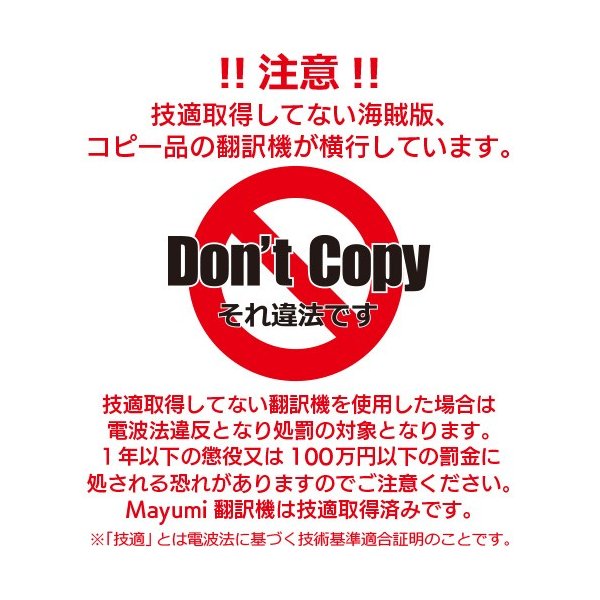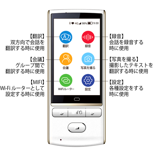 \\\大人気の音声翻訳機Mayumi3 レンタル開始/// 面倒な設定不要!届いた日からすぐに使える! 最大12日間85ヶ国周遊4GBデータ付プラン 税込12,800円(往復送料込) 海外でもWi-Fiルーターとして使えます ◎Wi-Fiルーター機能付き ◎4GBデータプラン付き ◎世界85ヶ国で通信可能(アメリカ、中国、インドネシアは対応外) ◎海外でも使える大容量モバイルバッテリー付き ◎往復送料無料 返却時は自宅への集荷も可能(ゆうパック) 4GBの利用可能目安 ・双方向音声翻訳 連続で約40時間 ・動画(中画質) 約8時間 ・LINEのメッセージ回数 約1000回 Wi-Fi環境がない場所でもご使用いただけます。またWi-Fiルーターとしてもご使用できるので、海外でWi-Fiルータ―をレンタルする必要がありません(5台まで接続可能)。 ※レンタルルーターを借りた場合 海外旅行で10日間25,000円とルーター破損の保険に加入→5,000円の合計30,000円がMayumiがあれば節約できます。 ご注意ください ・当店からの発送日がプラン開始日となります ・ご注文の際、備考欄に当店からの発送希望日をご記入ください ・発送準備に2~3営業日のお日にちをいただきますので、お早めにご注文ください ・カラーはお選びいただけません ・お届けから12日以内にご返却ください ・お支払い方法はクレジットカード決済のみ承ります ・汚損、破損、紛失された場合、最大で16,980円ご請求させていただく場合がございます ■■■■■■ 世界をもっと身近に Mayumi 3 ■■■■■■ 進化した音声翻訳機Mayumi3。Mayumi 3はさらに使いやすさを求めた仕様と進化した機能を追加しました。 ・85言語 双方向音声対応 ・双方向オフライン翻訳 ・グループ翻訳 ・録音翻訳(ボイスレコーダー) ・OCR 翻訳 ・カメラ翻訳 ・Wi-Fi ルーター機能 ・Bluetooth 対応 ・2G/3G/4G プラチナバンド対応 ・3インチ大画面タッチパネル ■■■■■Mayumi 3の特徴■■■■■ 85言語双方向音声対応 オンライン翻訳なので、言語毎に最適な翻訳エンジンを選択し、高精度の翻訳結果を実現しました。任意の2言語を選ぶだけで双方向に翻訳します。85言語全て音声とテキスト対応が可能です。 双方向オフライン翻訳 オフラインでも双方向で翻訳が利用可能です。日本語、中国語、英語、韓国語、ドイツ語、フランス語、イタリア語、ポルトガル語で双方向での音声翻訳が可能。インターネットが使用できない時にも翻訳可能。※オンラインと比べると精度は劣ります。 グループ翻訳(会議) Mayumi3またはMayumillの翻訳機を持っている人同士で遠隔地での会話が可能です。インターネットに接続し85言語で翻訳しながら会話ができるので多国籍企業での電話会議などにも利用が可能です。最大500人(理論値)まで、グループ翻訳通話に参加できます。 録音翻訳 会議や大切な内容などの音声を録音する、ボイスレコーダーとしてもご使用いただけます。ボイスレコーダーとしてご使用の場合は、1回の操作で連続約1時間録音できます。英語・中国語・広東語を録音の場合は、録音内容を約1時間、他国の言語に翻訳することもできます。 【対応言語(87言語)】 日本語、中国語(繁体字)、中国語(簡体字)、広東語、韓国語、英語(英国)、英語(米国)、英語(南アフリカ共和国)、英語(カナダ)、英語(オーストラリア)、英語(インド)、英語(アイルランド)、アイスランド語(アイスランド)、アフリカーンス語(南アフリカ共和国)、アラビア語(イラク)、アラビア語(カタール)、アラビア語(クウェート)、アラビア語(パレスチナ)、アラビア語(モロッコ)、イタリア語、インドネシア語、エジプト語、オランダ語、カタロニア語、ギリシャ語、クメール語(カンボジア)、クロアチア語、サウジアラビア語、ジャワ語、シンハラ語 (スリランカ)、スウェーデン語、スペイン語(アルゼンチン)、スペイン語(エクアドル)、スペイン語(コスタリカ)、スペイン語(コロンビア)、スペイン語(スペイン)、スペイン語(チリ)、スペイン語(パナマ)、スペイン語(ベネズエラ)、スペイン語(メキシコ)、スロバキア語、スロベニア語、スワヒリ語(ケニア)、スワヒリ語(タンザニア)、スンダ語(インドネシア)、タイ語、タミル語(インド)、タミル語(スリランカ)、チェコ語、テルグ語(インド)、デンマーク語、ドイツ語、トルコ語、ネパール語、ノルウェー語、ハンガリー語、バングラデシュ語、ヒンディー語(インド)、フィリピン語、フィンランド語、フランス語(フランス)、フランス語(カナダ)、ブルガリア語、ベトナム語、ヘブライ語(イスラエル)、ベンガル語(インド)、ポーランド語、ポルトガル語(ブラジル)、ポルトガル語(ポルトガル)、マラーティー語(インド)、マラヤーラム語(インド)、マレー語、ラトビア語、ルーマニア語、ロシア語、ミャンマー語(ビルマ語)(ミャンマー)、セルビア語(セルビア)、アルメニア語(アルメニア)、アラビア語(レバノン)、アラビア語(アルジェリア)、英語(ニュージーランド)、英語(フィリピン)、英語(ケニア)、スペイン語(アメリカ)、スペイン語(ペルー) ※ラーオ語(ラオス)、ウル