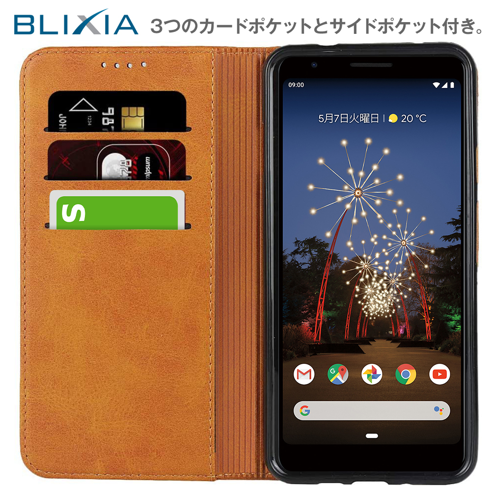 ■■■■■■ 5色から選べる手帳型ケース ■■■■■■ ~日常使いに最適なデザイン~ 大切なスマホを衝撃やキズから守る「Google Pixel 3a Pixel 3a XL 専用 手帳型ケース」。 高級感のあるレザー仕様でお仕立てしており、持つ人を選ばないシンプルで使い勝手の良いデザインとなっています。 内側は3つのカードポケットとサイドポケット付き、背面を折り返すとスタンドとして使用できるので、様々なシーンで便利にお使いいただけます。 ※商品を製造する工程にて内側のプラスチックに傷が付く場合がございますが、スマートフォンを装着すると見えなくなる箇所ですので何卒ご了承くださいませ。 【対応機種】 Google Pixel 3a Pixel 3a XL 【材質】 外側:合成皮革、内側:TPU 【カラー】 レッド、ブラウン、キャメル、ネイビー、ブラック