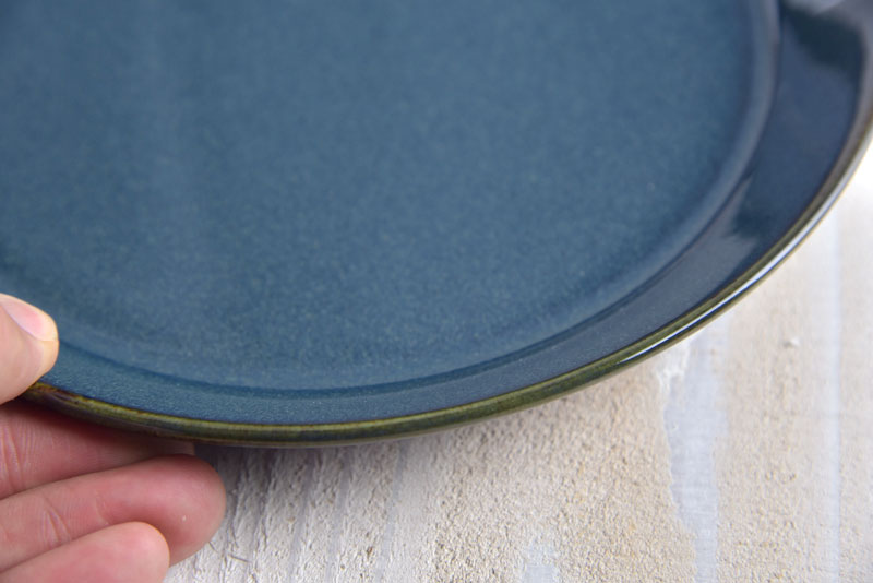 漂亮的北欧风海洋蓝圆形盘子 漂亮的圆形盘子成为餐桌上的亮丽风景线 北欧风的海洋蓝让商品显得与众不同。 ※由于由于釉药的特性,商品可能存在少许突起和斑点。 ※制作过程中可能会产生不可避免的小伤痕。 ※由于使用发色稳定性非常差的釉药,不同批次的商品可能存在色差。 ※2016年10月更改了商品名称。 长宽/20.2x20.2cm 高/2.6cm 重量/420g 电子微波炉/OK 洗碗机/OK 陶器・日本制/美浓瓷器