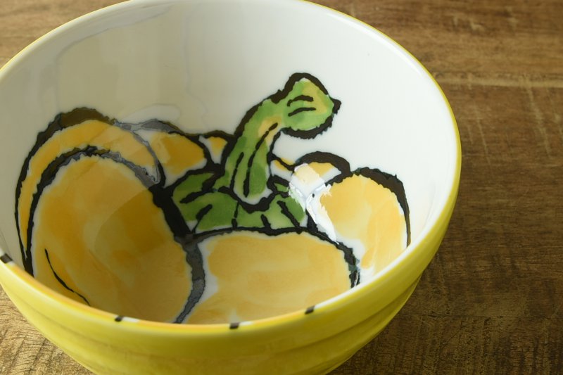 如同绘在纸上般,质朴的笔描绘的蔬菜系列。 让您想产生使用图片上蔬菜的食欲。 调皮的将餐具和菜肴统一是因有一颗热情好客的心 长宽/13.5x13.5cm 高/7.3cm 重量/305g 容量(满水时)/500cc 电子微波炉/OK 洗碗机/OK 陶器・日本制/美浓瓷器