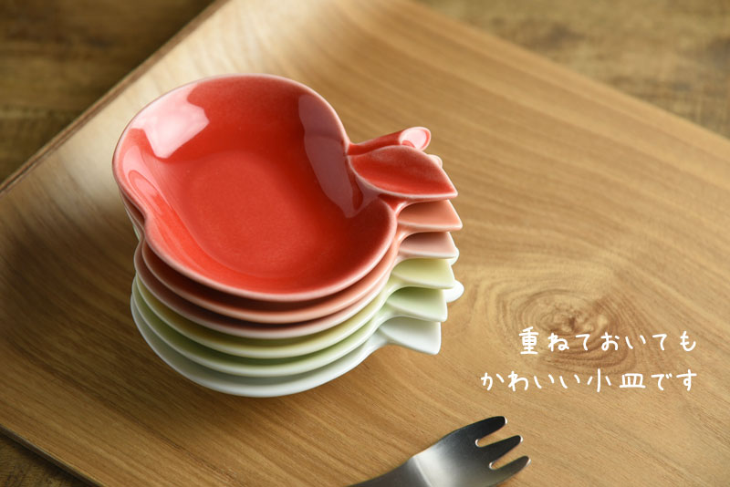 非常可爱的苹果形状豆皿。 有红、橙、粉、金翅雀、蓝、白瓷6种颜色,可以根据喜好选择。 可以当小碟或盛放下午茶的零食器具使用。 长宽/10.3x10.7cm 高/2.2cm 重量/80g 电子微波炉/OK 洗碗机/OK 注意/由于釉药的特性,商品可能存在色斑等问题。 陶磁器・日本制/美浓瓷器
