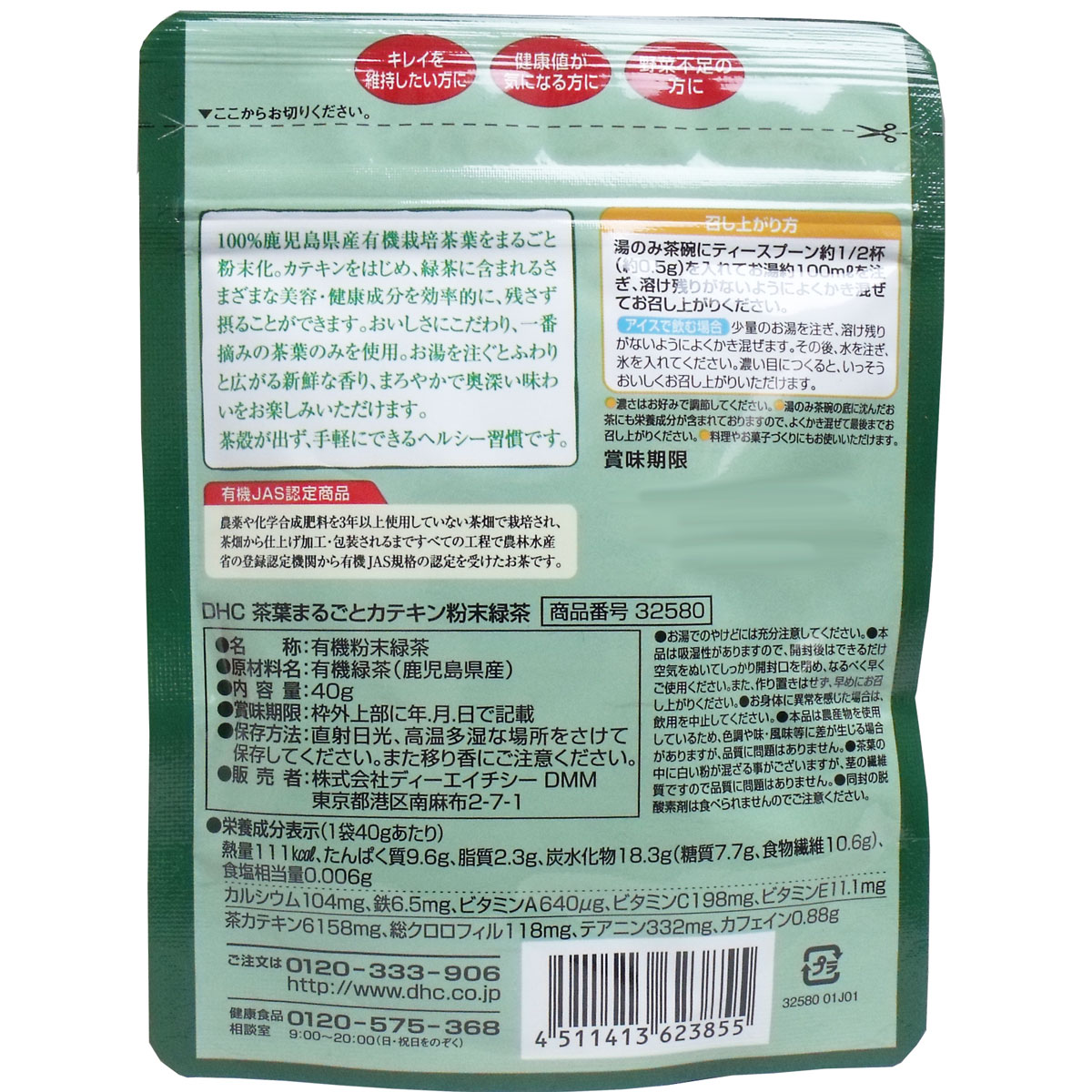 "使用100%鹿儿岛国产有机茶叶! 1袋含有6158mg儿茶素。 ● 将收获后的茶叶捣碎磨成绿茶粉末。 収穫したお茶の葉をまるごと粉砕してできる粉末緑茶。通过溶解茶叶和饮用茶叶茶,可以有效地摄取茶叶中所含的各种保健成分,如难溶于水和热水的膳食纤维,维生素,叶绿素等。 ● 使用国产有机栽培茶叶。 ● 采用新鲜的茶叶制作。 当倒入热水时,蓬松清新的气味会散发出来,您可以享受到醇厚,深沉,苦甜的味道 ● 推荐希望保持美丽健康的人群饮用。 <安心・安全的有机JAS认定商品> 使用3年以上未使用农药或化学合成肥料的土地进行茶叶栽培,从茶叶加工到包装均得到林业和渔业部的注册认证机构有機JAS规格认证。 <采用严格的粉末制法!营养成分完全融入茶叶!> 将茶叶的营养粉末化,保证100%摄取营养。 另外,采用防止产生热量的粉末制法能够有效抑制由于热量产生的营养变化或酸化、味道・颜色的变化。 单品尺寸:120X160X15mm 单品重量:約50g 净含量:40g 【商品名称】 有机粉末绿茶 【原材料】 有机绿茶(鹿儿岛县产) 【营养成分(1袋40g含量)】 热量・・・111kcaL 蛋白质・・・9.6g 脂肪・・・2.3g 碳水化合物・・・18.3g(糖分7.7g、食物纤维10.6g) 盐分・・・0.006g 钙・・・104mg 铁・・・6.5mg 维生素A・・・640μg 维生素C・・・198mg 维生素E・・・11.1mg 茶儿茶素・・・6158mg 总叶绿素・・・118mg 茶氨酸・・・332mg 咖啡因・・・0.88g 【饮用方法】 将约1/2茶匙(约0.5克)加入茶杯中,倒入约100毫升热水,搅拌均匀饮用。 <冰镇饮法> 加入少量热水搅拌均匀。 注入水,加入冰块。 ※根据喜好调整茶的浓度。 ※茶壶碗底部残留的茶叶也含有营养成分,请搅拌均匀饮用。 ※可以用来烹饪食物和制作糖果。 【注意事项】 ・请勿将产品放置于阳光直射、高温多湿的场所。另外请注意茶叶芳香的失散。 ・植入开水时请防止烫伤。 ・开封后请尽快使用。 ・身体感觉异常时请停止饮用。 ・本产品含有农作物成分,颜色・味道等有存在差异的情况,但不影响产品质量。 ・茶叶中含有白色粉状茎的纤维物质,不影响产品品质。 ・请勿误食包装袋中的防腐剂。 "