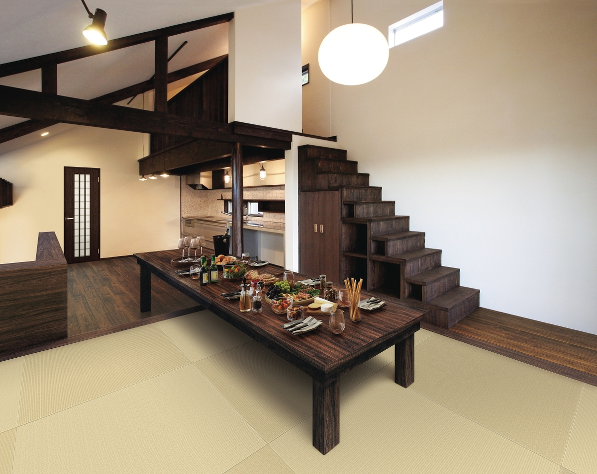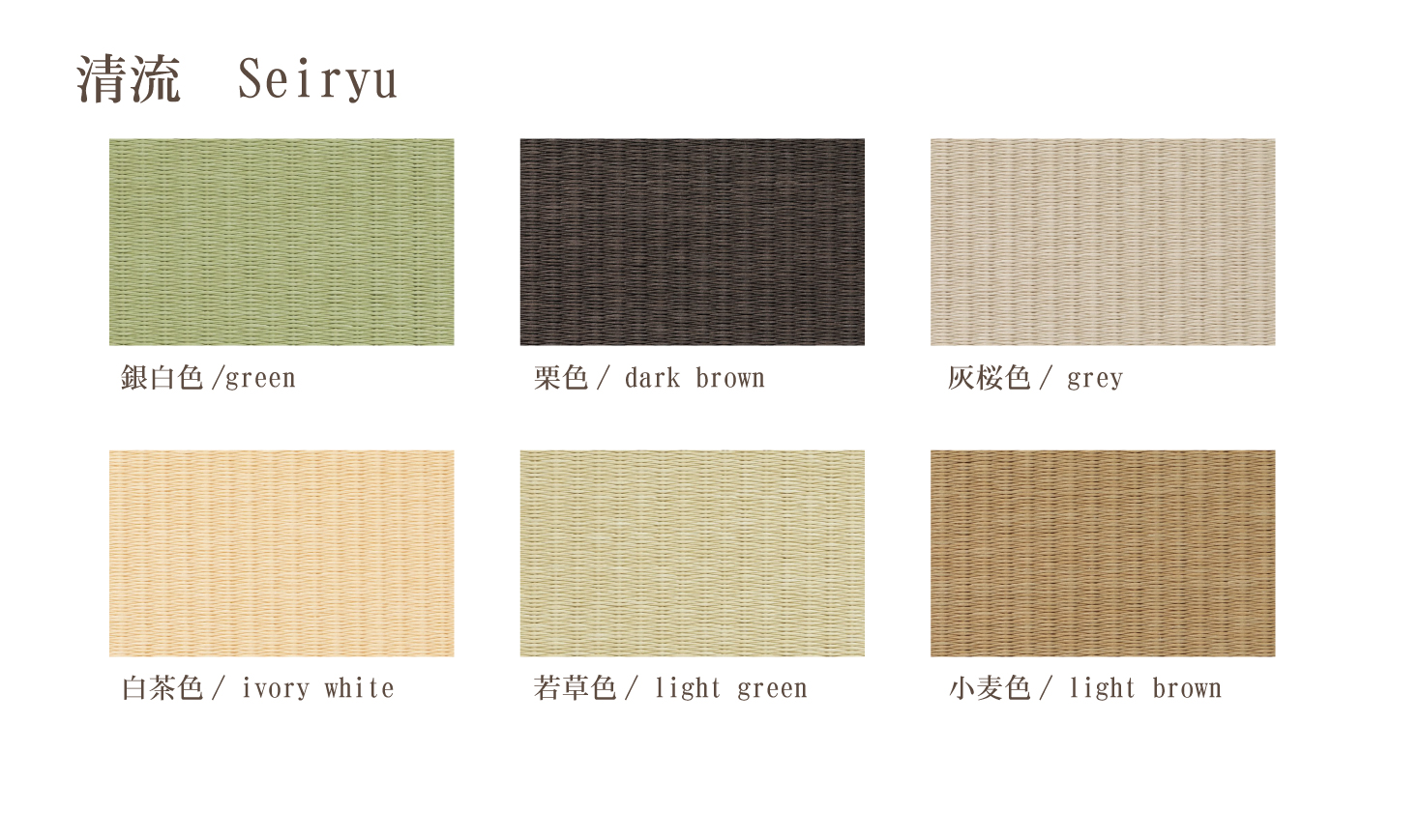 是用和纸织的天然材料的放置榻榻米 用纸绳加工成和纸,再涂上树脂,交叉编织成榻榻米的表面。榻榻米的舒适度不变,设计性和机能性得到升华,变成更容易接受的摩登榻榻米,更能融入现在的生活。和纸表面的舒适性和丰富的设计改变您的生活景色。 标准的线码「清流」适合任何的空间。 从6种颜色里选择。 【特征】 ﹒榻榻米具有吸湿、放湿性,摸起来很舒服。 ﹒霉﹑螨虫的发生比以往的灯心 草要少很多。 ﹒具有拨水性,餐桌周围的清扫也简单。 ﹒是以往的榻榻米的耐久性的3倍,抗磨擦。 ﹒不容易受紫外线而变色,长时间保持最初的美色。 尺寸︰82cm x 82cm 厚度1.3cm 重量:约3Kg/1张 榻榻米表面︰机械漉和纸织物 反面:防滑面 基材︰隔热板